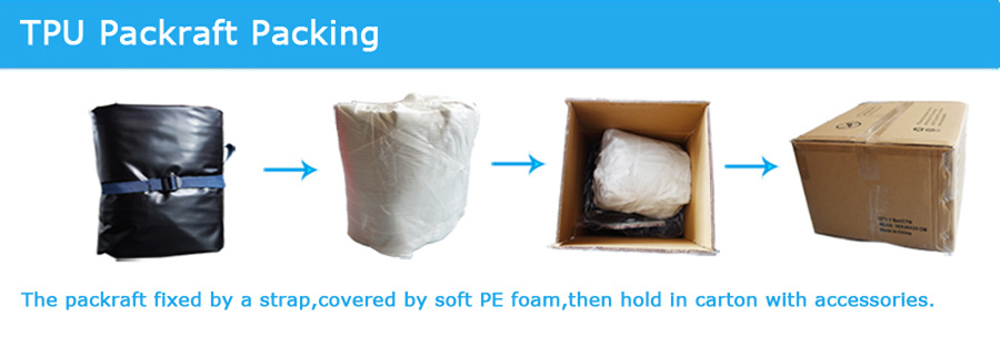 Packraft léger personnalisé en TPU avec 2 sièges amovibles, la longueur extérieure de 290 cm, devrait être suffisante pour un adulte et un enfant, ou un adulte avec un chien, pas assez d'espace pour 2 adultes.